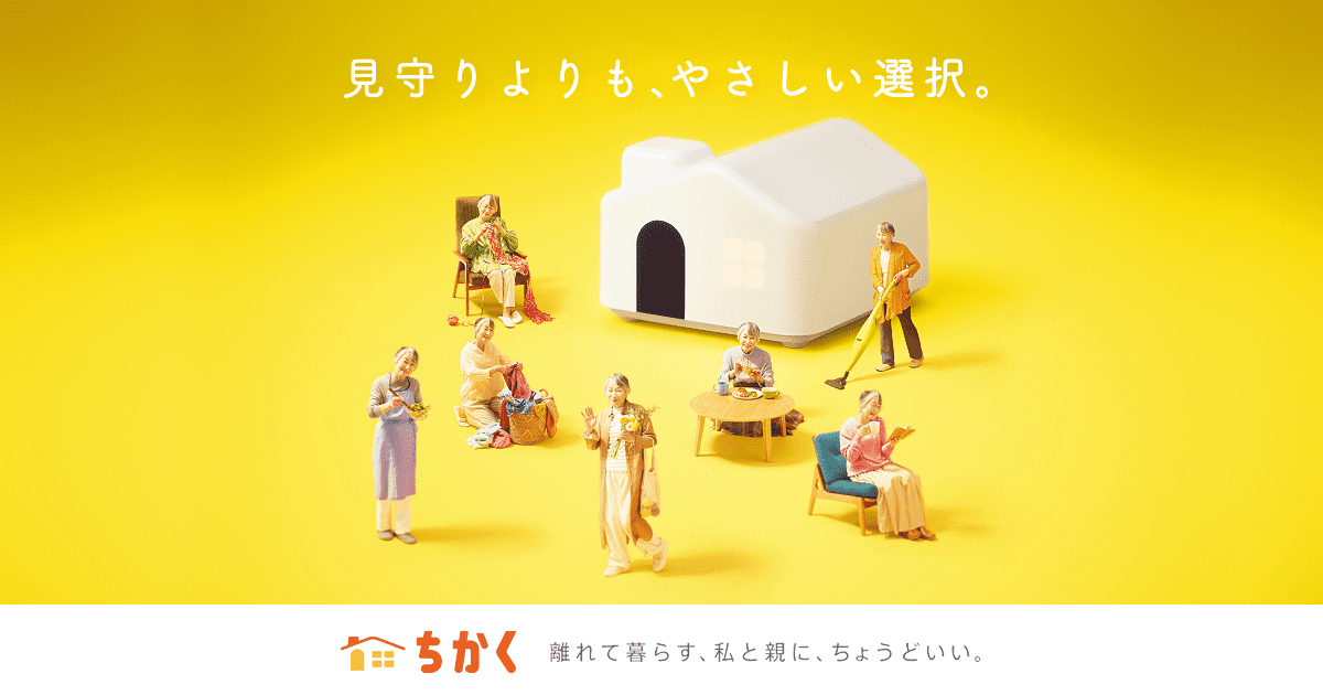 子ども側には、スマホで親の暮らしがわかるあんしんを。親側には、テレビを使って手軽に会える楽しみを。「ちかく」は、離れて暮らす親子が、ほどよい距離感を保てるちょうどいいサービスです。見守りサービスは、監...