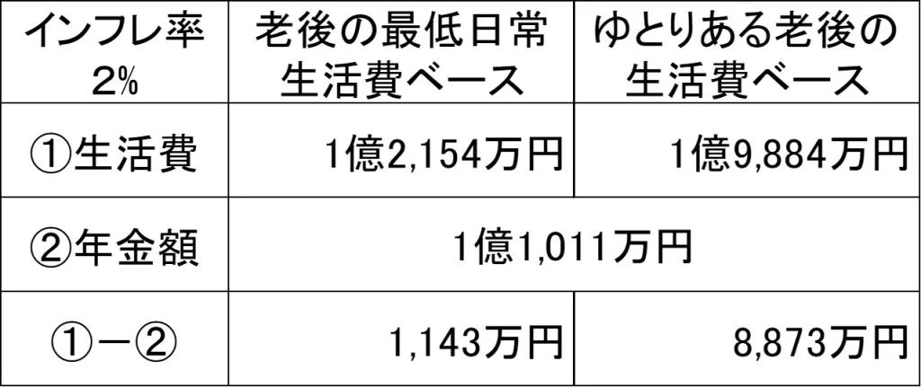 政府・日銀は今後のインフレ率目標を2%としている。そこでインフレ2%を勘案して今後30年間の生活費を算出する。